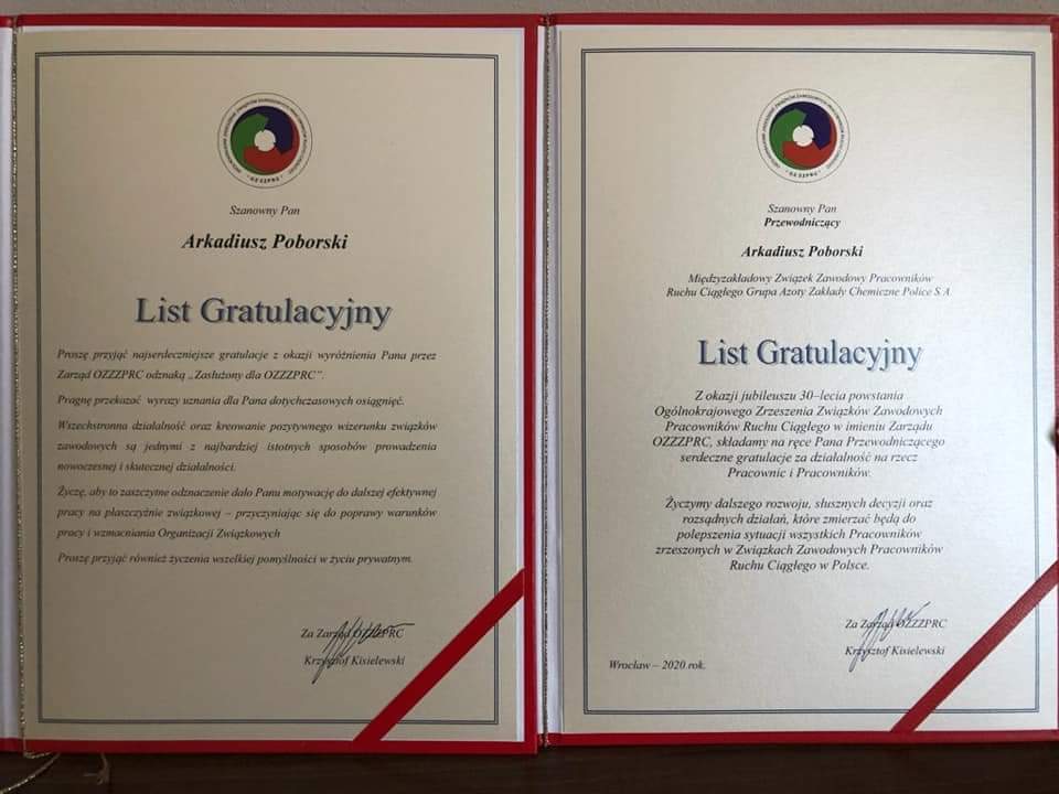 oraz Przewodniczącym Międzyzakładowego Związku Zawodowego Pracowników Ruchu Ciągłego Grupy Lotos.