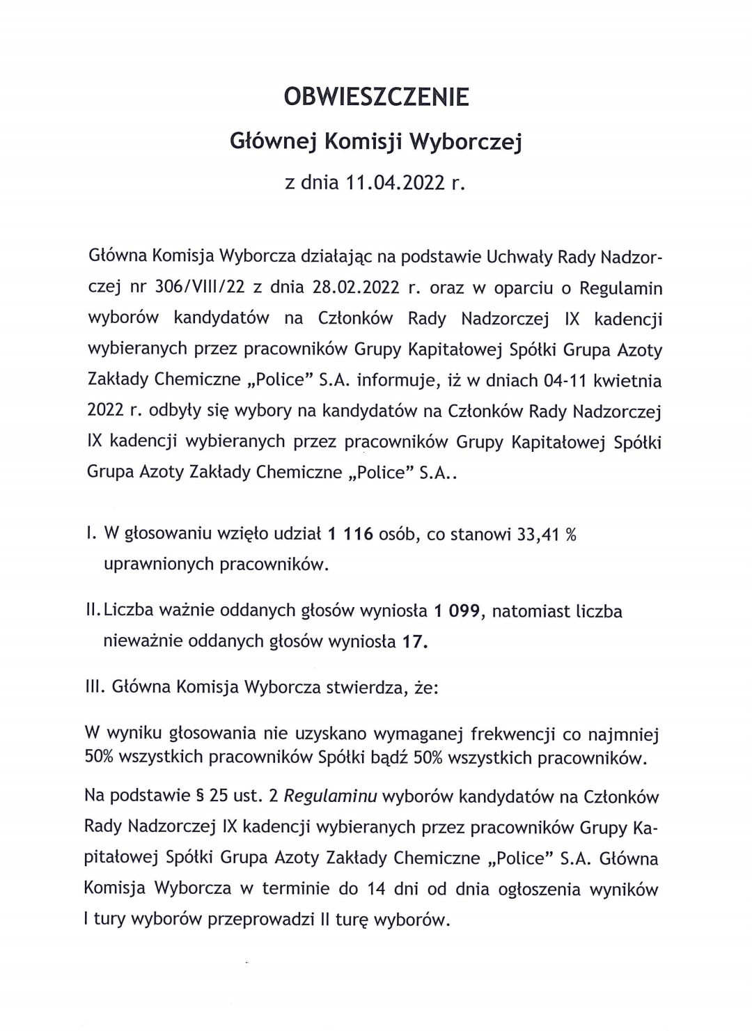 Zapraszamy do zapoznania się z pismem odnośnie: Wyborów na przedstawiciela załogi do Zarządu
