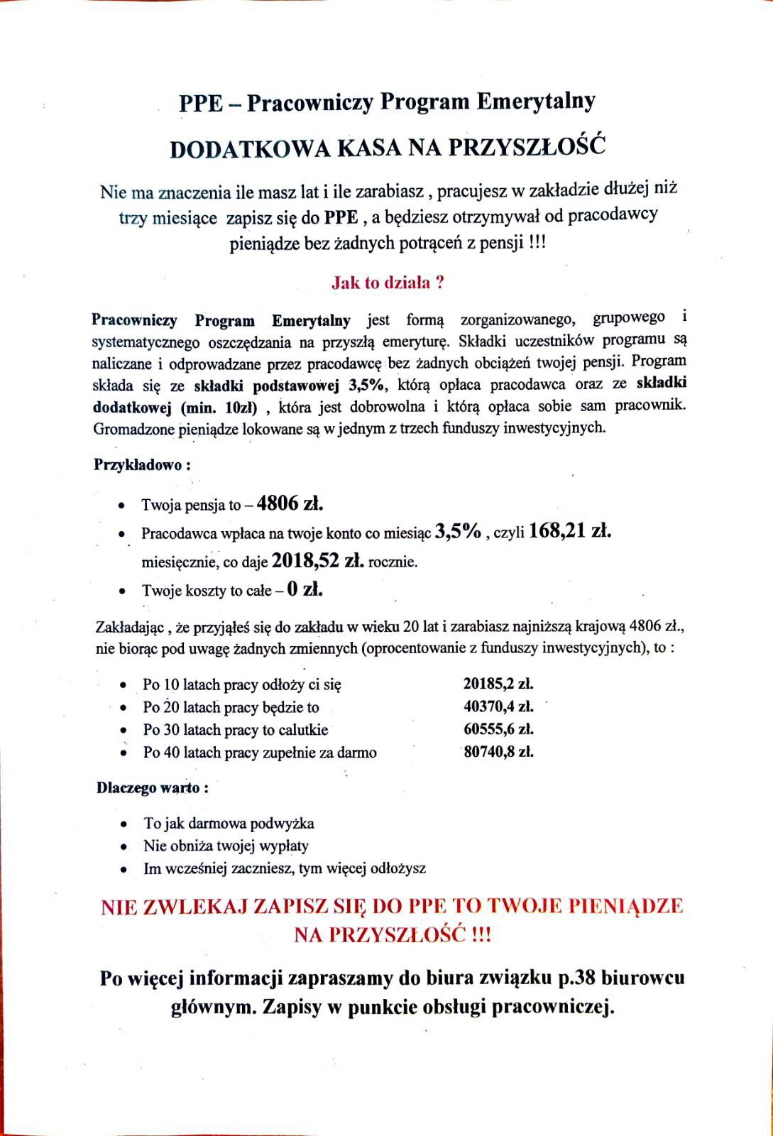 Nie zwlekaj — dołącz do Pracowniczego Programu Emerytalnego, bo każdy kolejny dzień niesie ze sobą same korzyści dla Ciebie.
