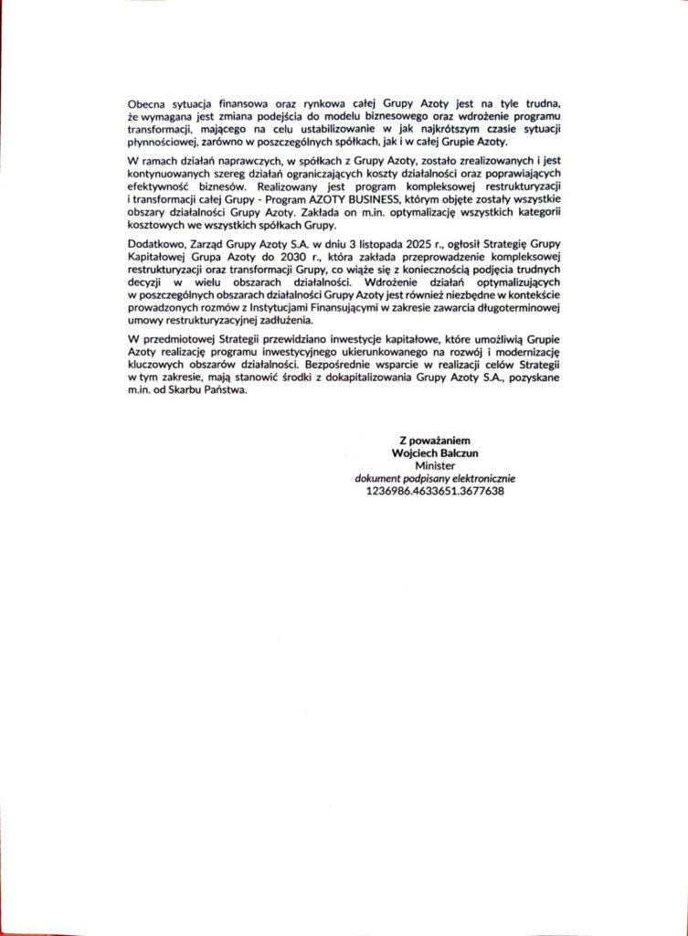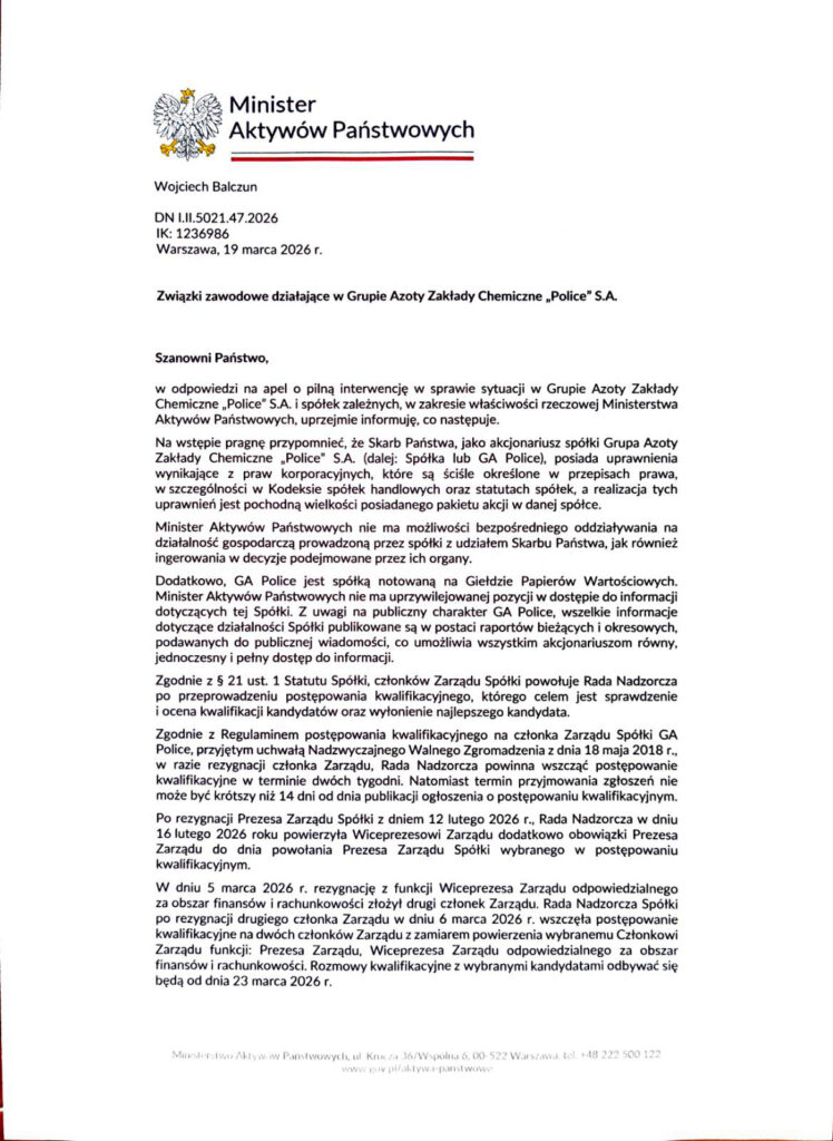 Odpowiedź Ministra Aktywów Państwowych
